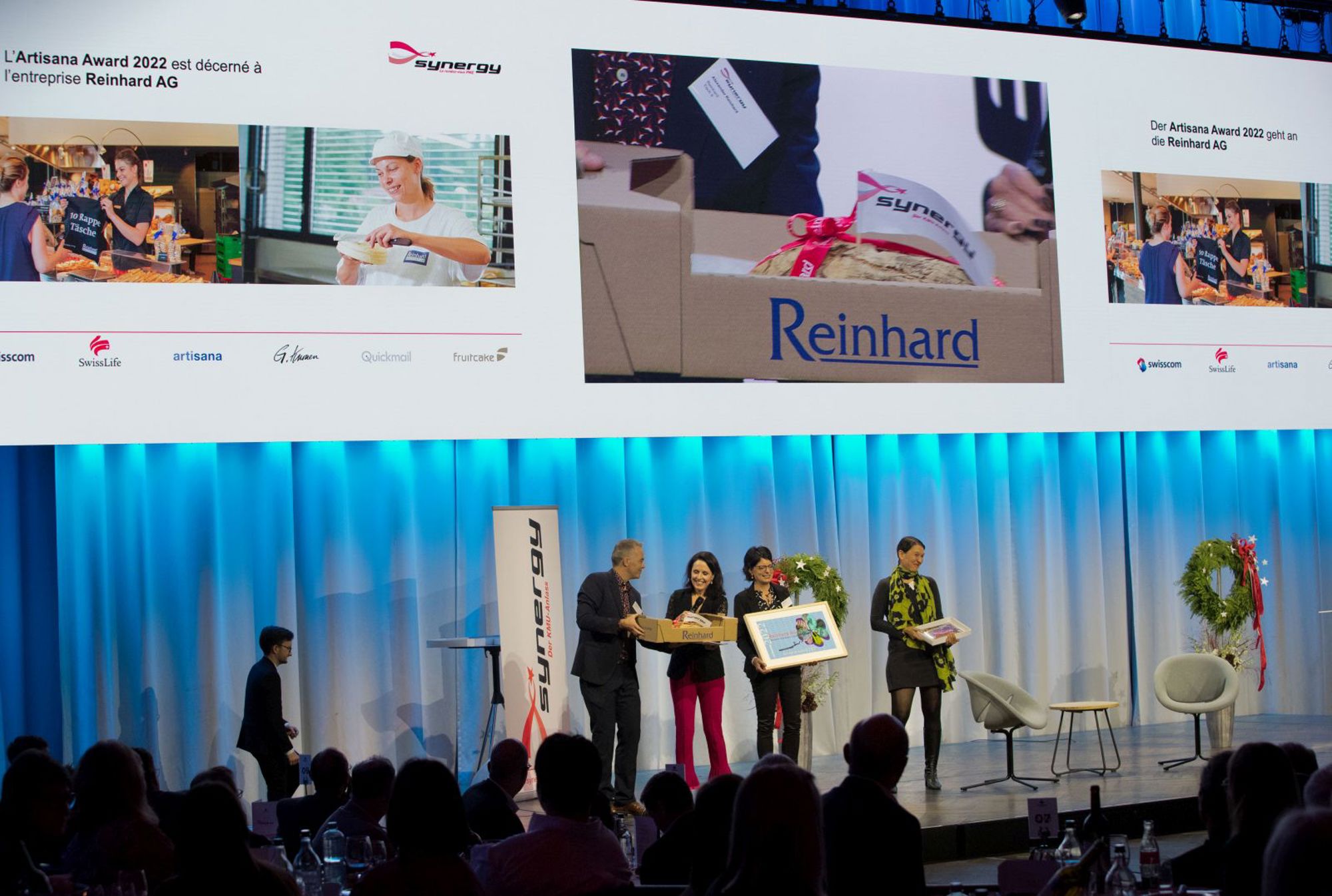 Die synergy 2022 fand am 2. November im Kursaal in Bern statt und setzte sich mit dem Schwerpunkt «Champions» auseinander. Vorgestellt wurden die KMU Gelateria die Berna, Lüond Transport AG sowie Cannerald AG. Der jährlich von der Stiftung Artisana verliehene Gesundheitsförderungspreis ging an die Bäckerei Reinhard AG aus Bern.
